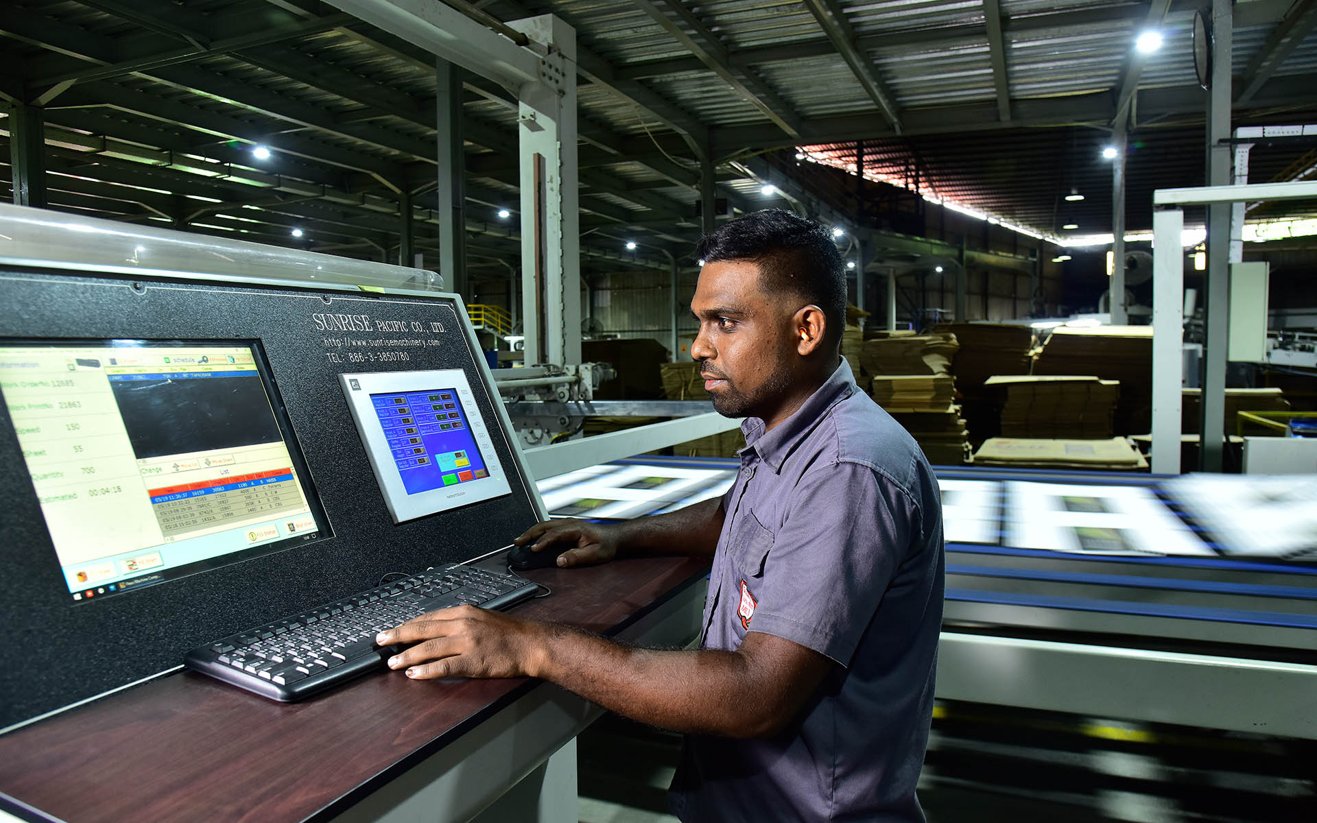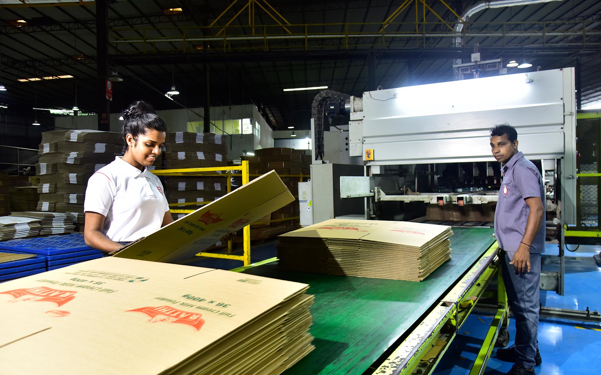 1 High speed Fully computerized Board production line with auto pallet loading. 5–Advance printing lines that can handle all types of Industrial & commercial boxes. 2 Fully automated flat bed Die machine with double stripping function. 1 Flute laminator for value added boxes and customized packing solution. 2 fully automatic stitching and gluing machine